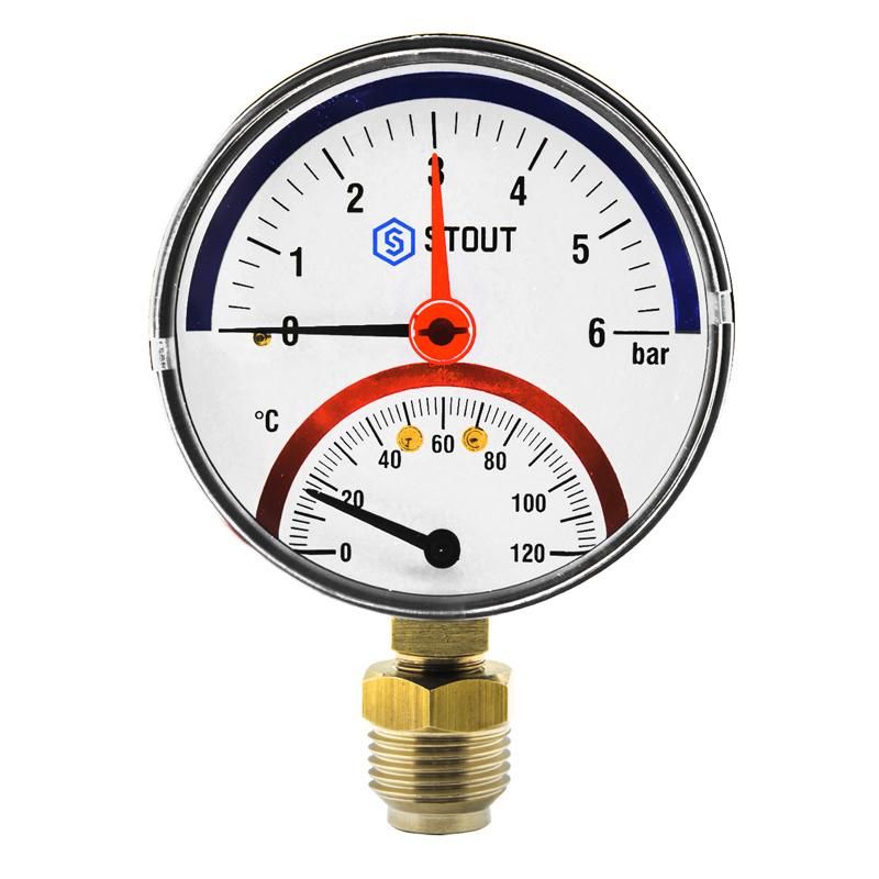 Термоманометр радиал. (нижн.подкл) с авт.запор. клап. Dn 80 мм, 1/2", 0-10 bar, 0-120°С, STOUT