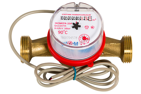 Счетчик воды 20И Универсальный Импульсный с монтаж.комплектом Экомера