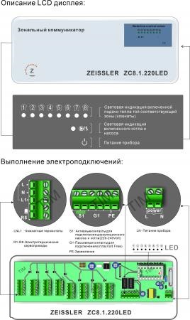 Зональный коммуникатор на 8 каналов TIM ZC8.1.220LED представляет собой проводной коммутационный блок, который предназначен для управления исполнительными механизмами в системе отопления на основании информации от терморегуляторов.Принцип действия Термостаты подают сигналы (включить нагрев/отключить нагрев) на основании показаний своих датчиков температуры в контрольный центр, который в свою очередь подключает через реле своих потребителей.