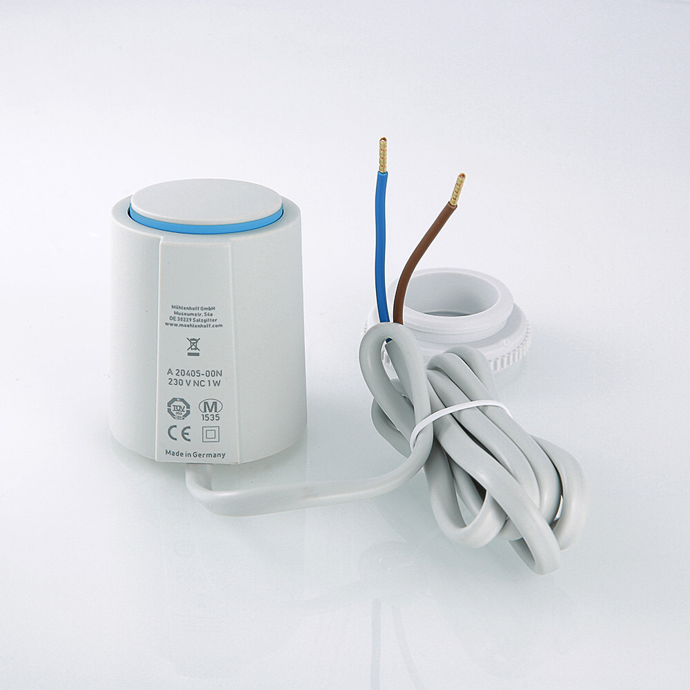 ? Сервопривод для отопительной системы основан на технологии расширения, заполняющего сильфон, армированного парафина, при протекании электрического тока через встроенный нагревательный элемент. Управление происходит по сигналу от комнатного термостата или контроллера, что делает его идеальным выбором для автоматизации систем отопления и охлаждения.