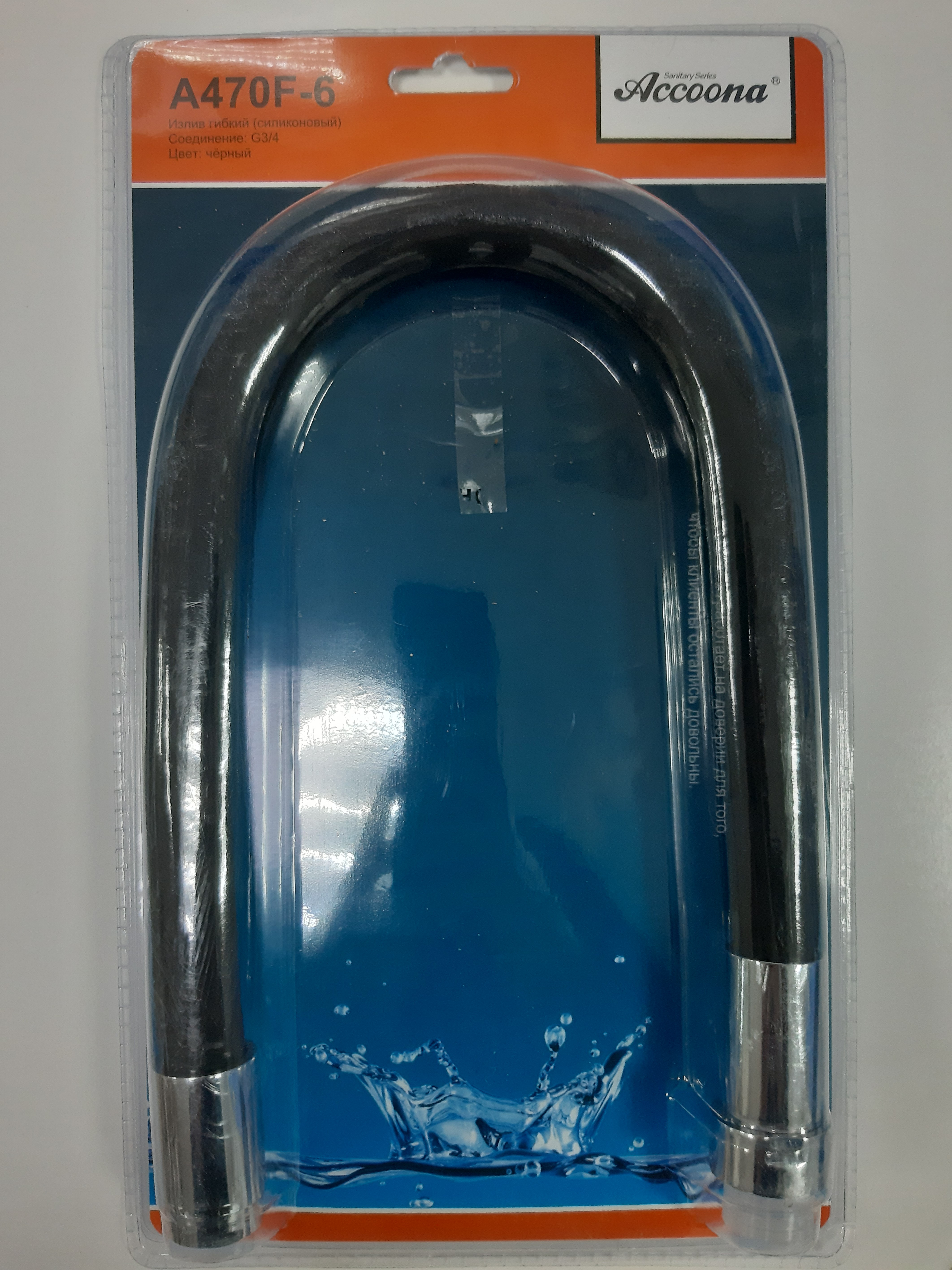 Излив гибкий силиконовый 3/4 Черный блистер Accoona A470F-6