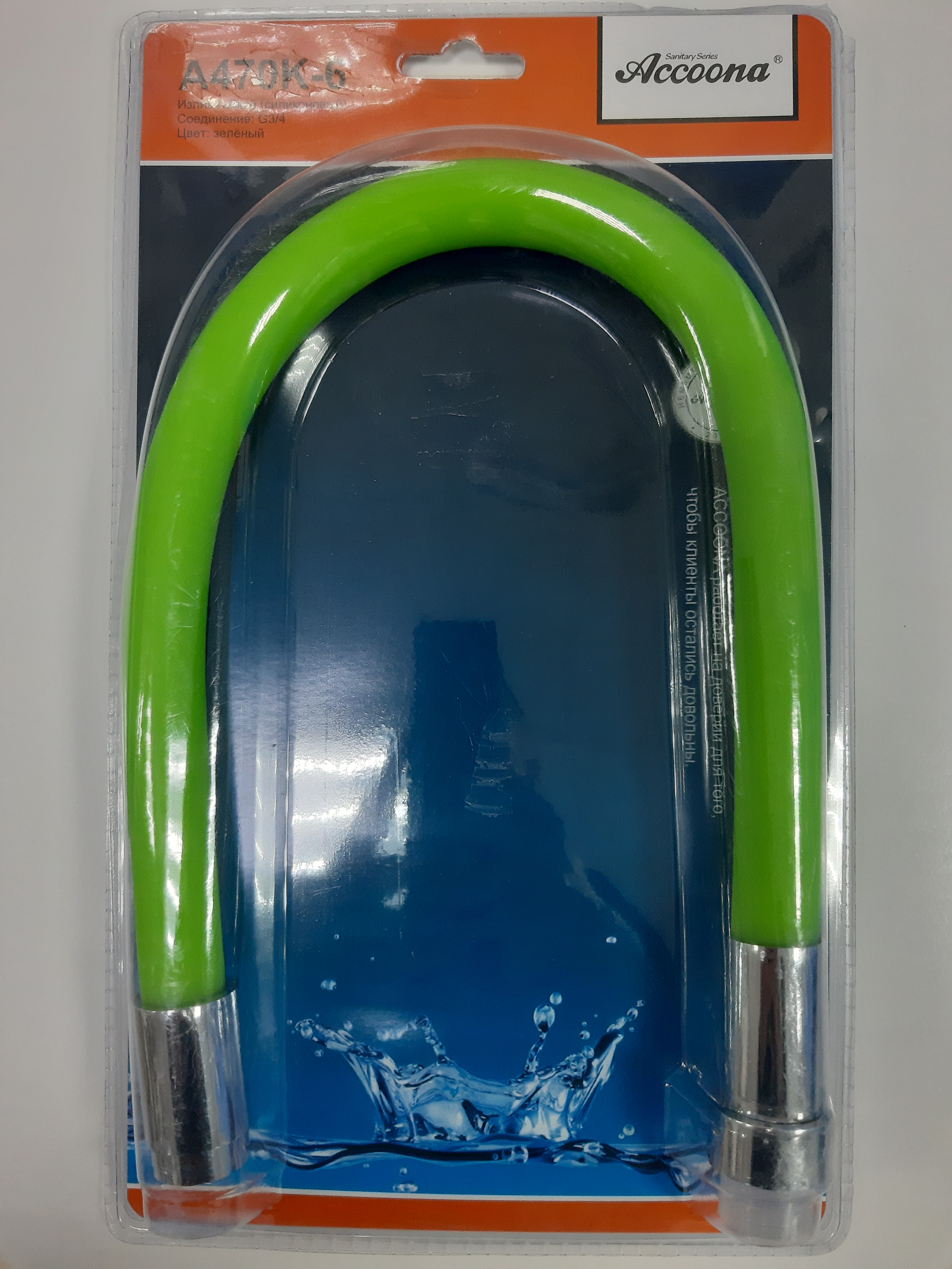 Излив гибкий силиконовый 3/4 Зеленый блистер Accoona A470K-6
