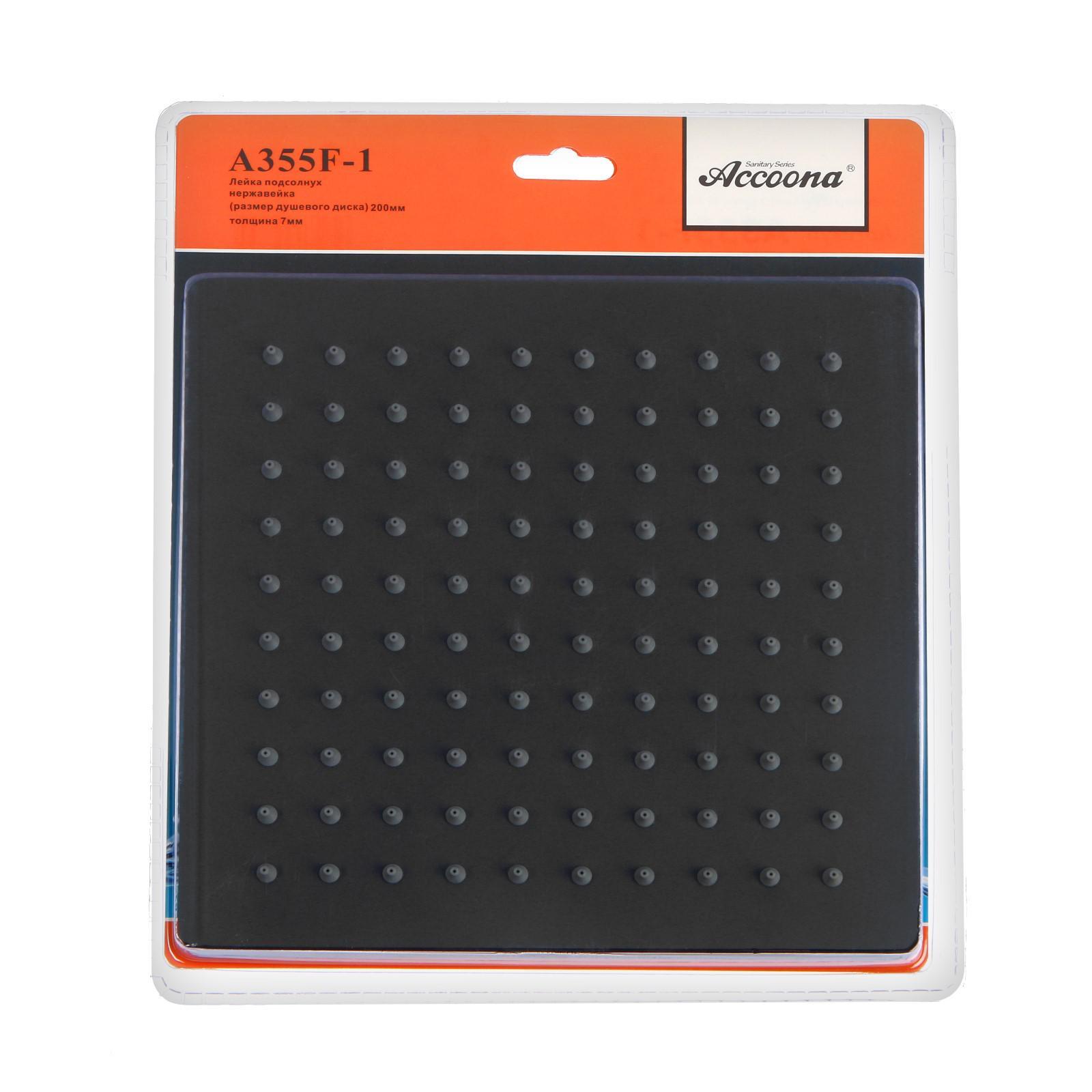 Лейка для душа тропическая квадрат 20х20х0,65 см Нержавеющая сталь Черная A355F-1 Accoona