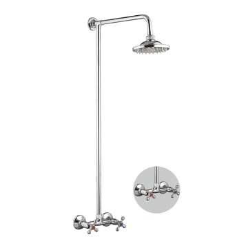 Душевая система с тропическим душем и двухрычажным смесителем с барашками крест на стойке без излива Accoona A8176 Силумин