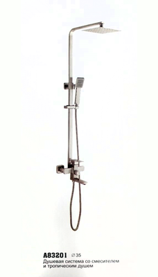 Душевая система со смесителем и тропическим душем Нержавеющая сталь Accoona A83201 это сочетание современного, оригинального дизайна, надежности и комфорта. Душевой гарнитур с тропическим душем имеет специальный рассеиватель- при прохождении через решетку тропического душа вода поступает плотными упругими струями и объединяется с воздухом, струи становятся мягче и уже не стучат по телу, а нежно окутывают его. Вы сможете расслабиться от суеты повседневной жизни под теплым тропическим ливнем. Душевая система с изливом и тропическим душем очень практичное решение, вы без труда сможете набрать воды в емкость, постирать и так далее.Душевая система из нержавеющей стали надежная и выгодная покупка она легко переносит резкие перепады температуры и устойчива к поверхностным повреждениям. Для поддержания идеального внешнего вида ее достаточно протереть махровой тряпочкой.