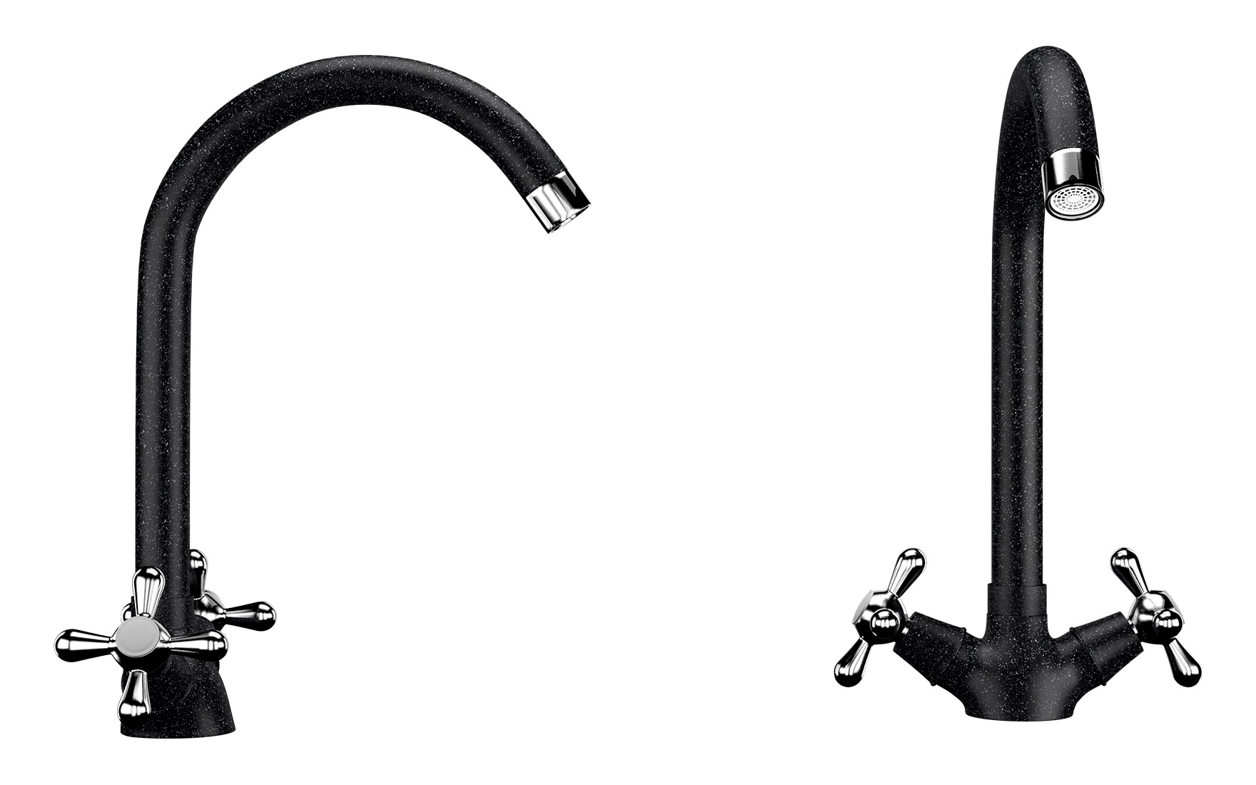 Смеситель 07-308 кухня крест (черный) EcoStone