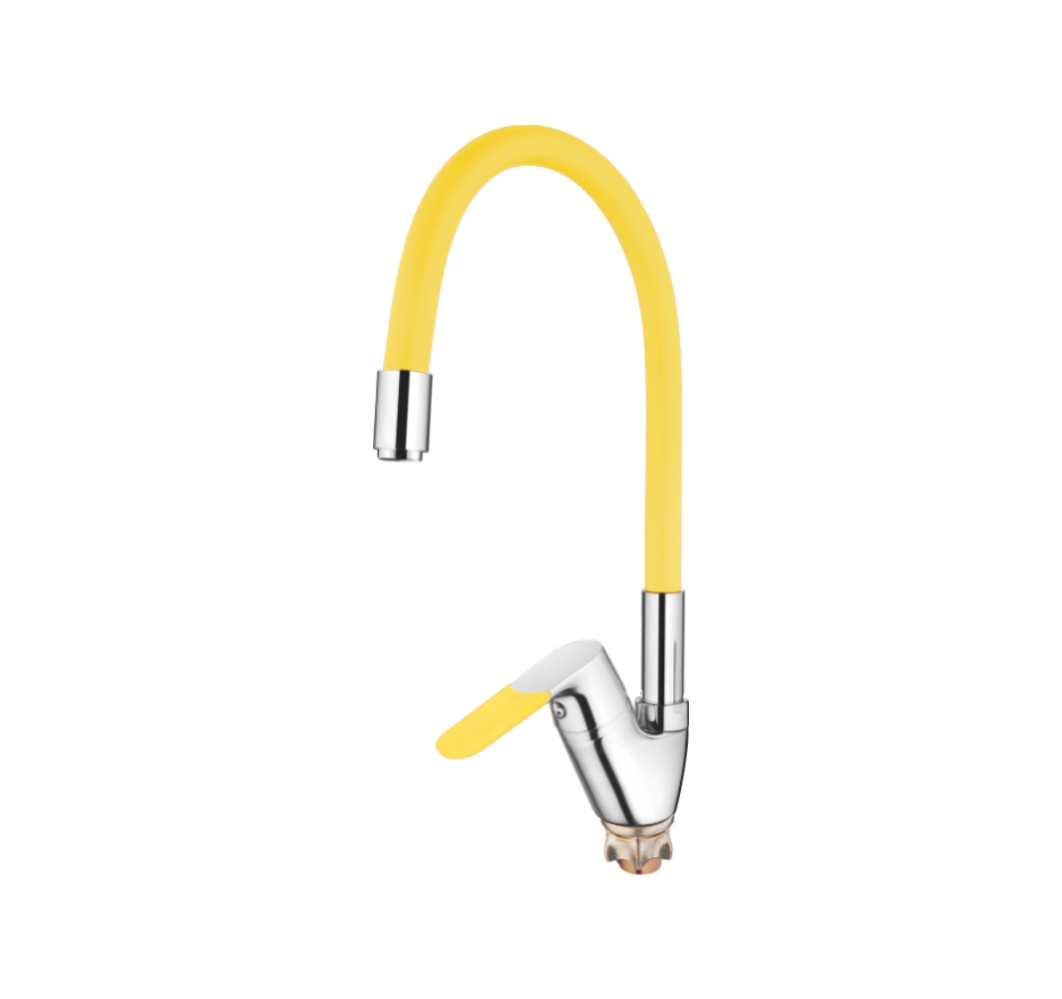 Смеситель кухня силиконовый излив (35) Латунь Жёлтый+Хром Accoona A4819H