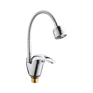 Смеситель кухня боковая ручка гибкий излив двухрежимный на гайке (40) Силумин Accoona A4840 (АС1)