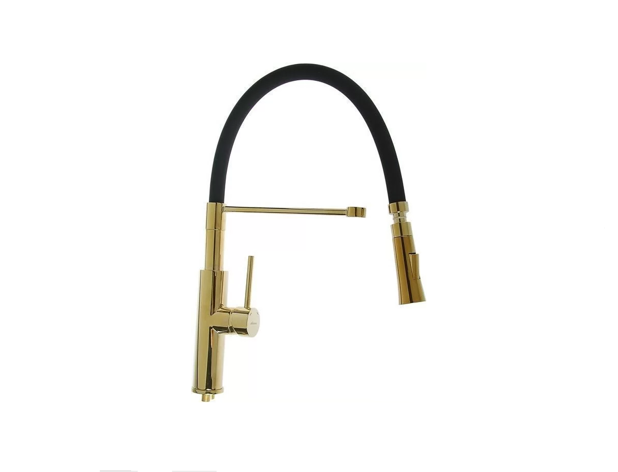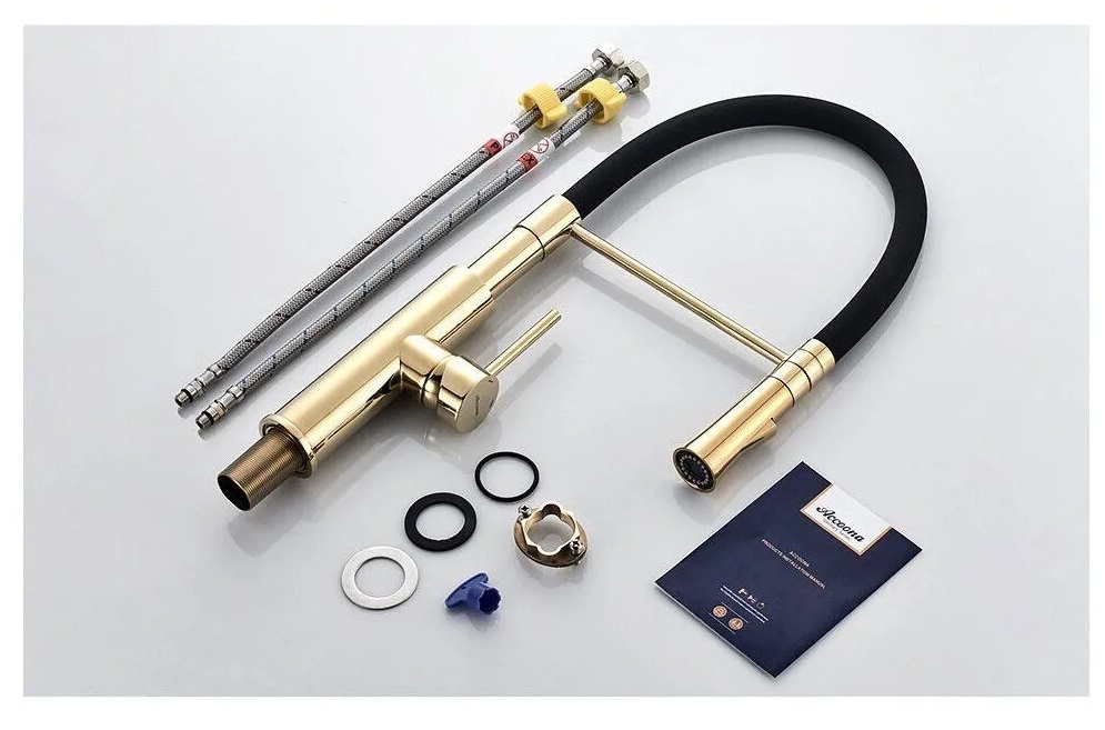 Смеситель для кухни высокий золотой черный с гибким изливом Accoona A4890WF-1