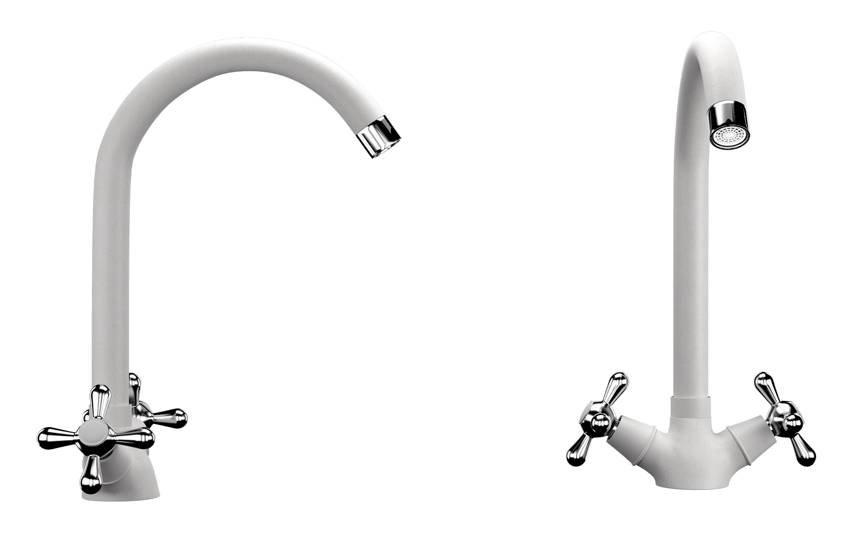 Смеситель 07-341 кухня крест (молочный) EcoStone