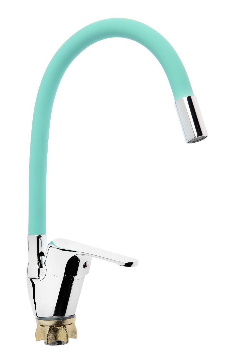 Смеситель кухня с силиконовым изливом Силумин (Зелёный+хром) A4844K