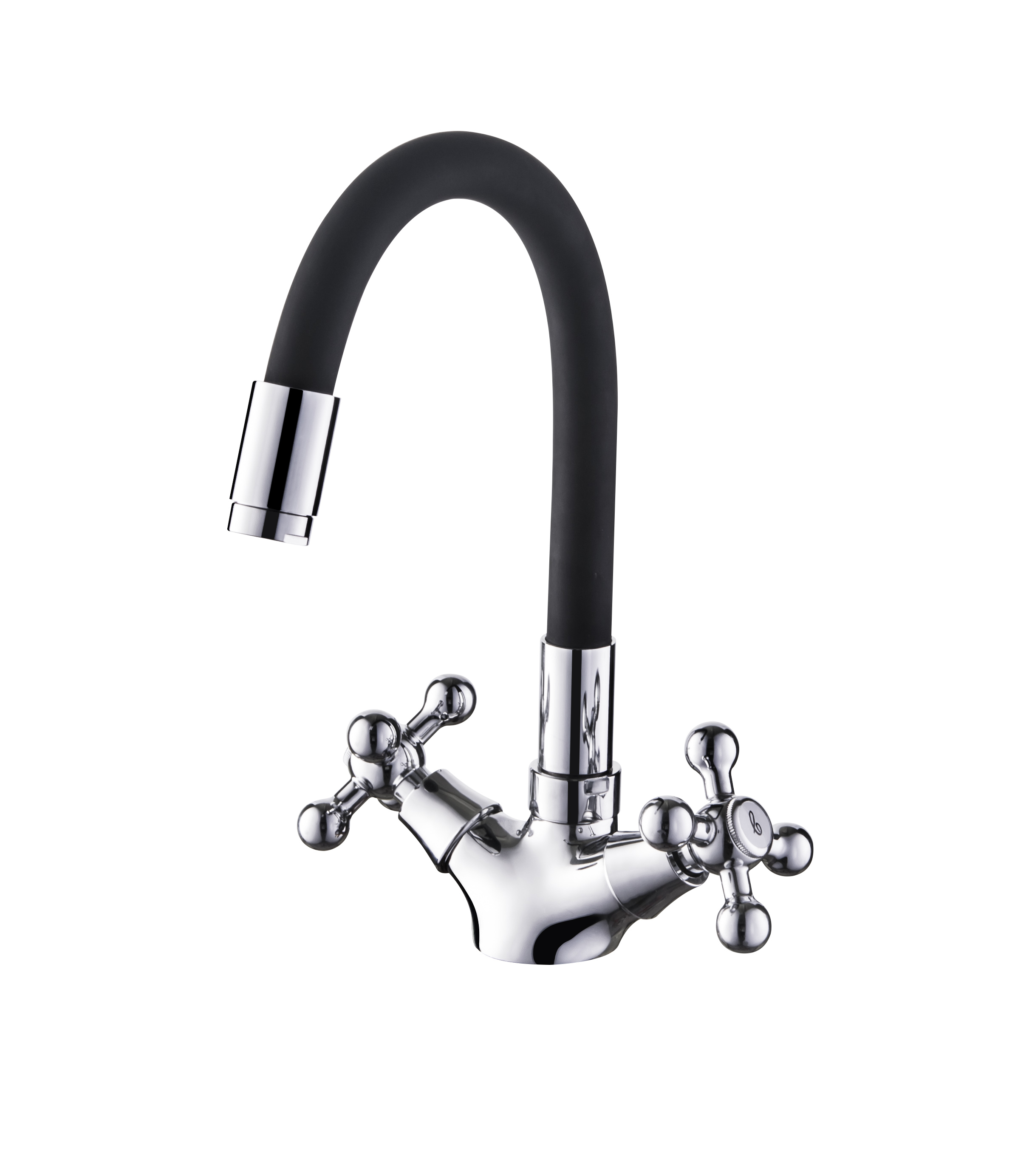 Смеситель раковина крест силиконовый излив Черный+Хром Accoona A9871F (АС6) (АС8`)
