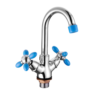 Смеситель раковина на гайке крест поворотный излив Силумин Синий+Хром Accoona A9482M