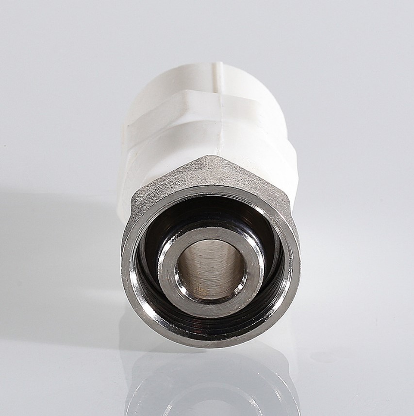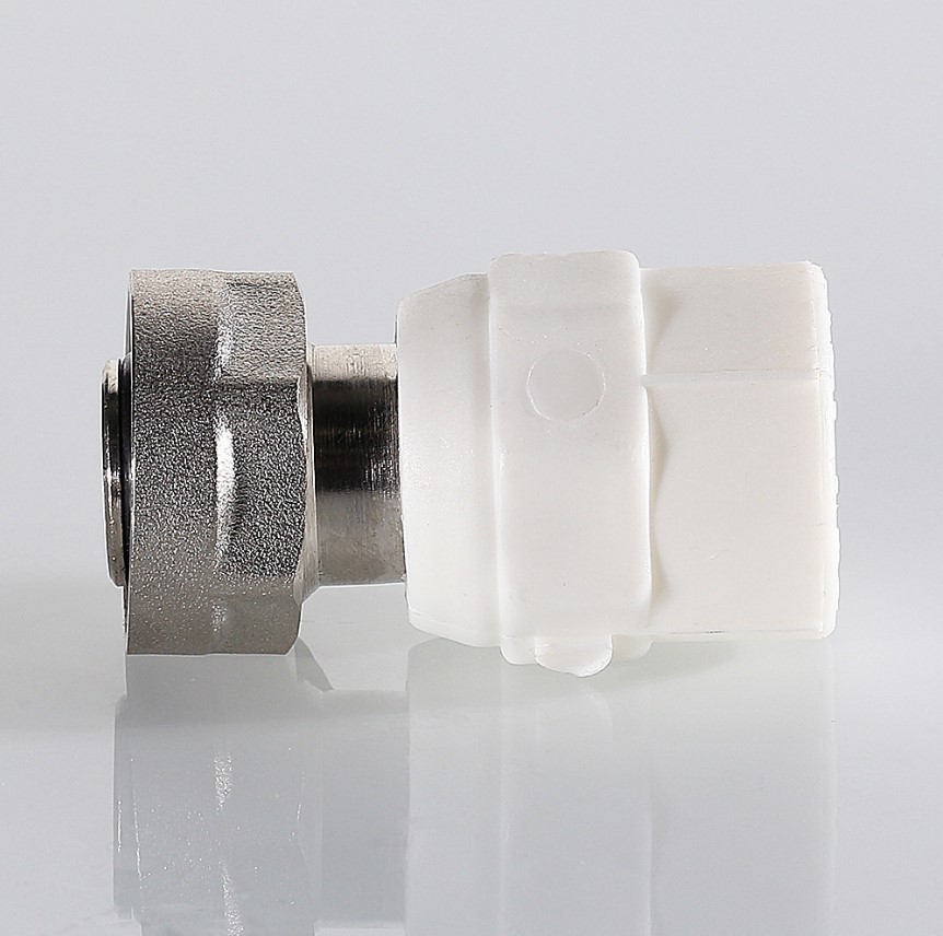 (VTp.708.E.0) Соединитель с накидной гайкой VT.708E.0 позволяет напрямую, без каких-либо переходников, присоединить полипропиленовую трубу к арматуре с выходами стандарта «евроконус».Корпус фитинга изготовлен из полипропилена, накидная гайка и закладная деталь – из латуни CW617N с нанесением никелевого гальванопокрытия. Никелирование закладной детали исключает охрупчивание полипропилена при контакте с содержащейся в латуни медью. Конструкция соединения латунной детали с полипропиленовым корпусом запатентована VALTEC. Узел дополнительно герметизирован EPDM-кольцом. Наружный диаметр присоединяемой трубы – 20 мм.