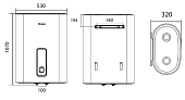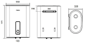 Отличием плоского бойлера от аналогов является корпус прямоугольной формы. Его размер зависит от объема жидкости в литрах, которая помещается внутрь резервуара. На скорость нагрева влияет мощность установленных ТЭНов.