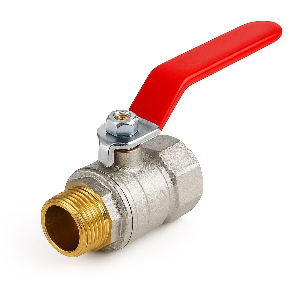 Кран шаровой 2 STANDARD г/ш TIM с длинной красной ручкой?рычагом и никелированным латунным корпусом — надёжное запорное устройство для систем водоснабжения, отопления, сжатого воздуха и неагрессивных сред.Благодаря полнопроходной конструкции обеспечивает максимальную пропускную способность.