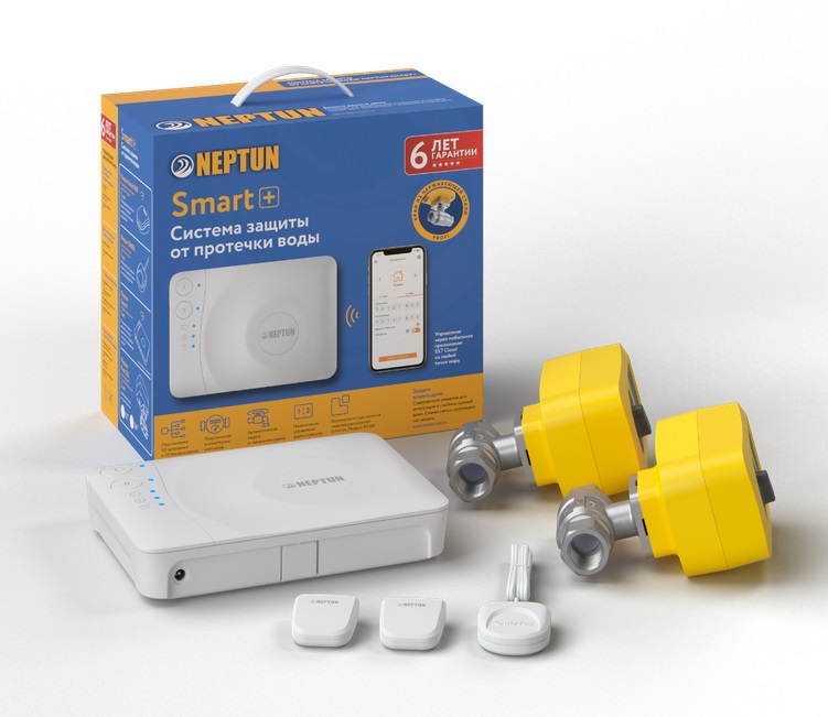 Умная система защиты от протечки воды Neptun PROFI Smart+ предназначена для обнаружения и локализации протечек воды в системах водоснабжения.Компоненты системы связаны и взаимодействуют друг с другом через центральный контроллер (модуль управления Neptun Smart+), который может быть укомплектован дополнительными платами расширения: